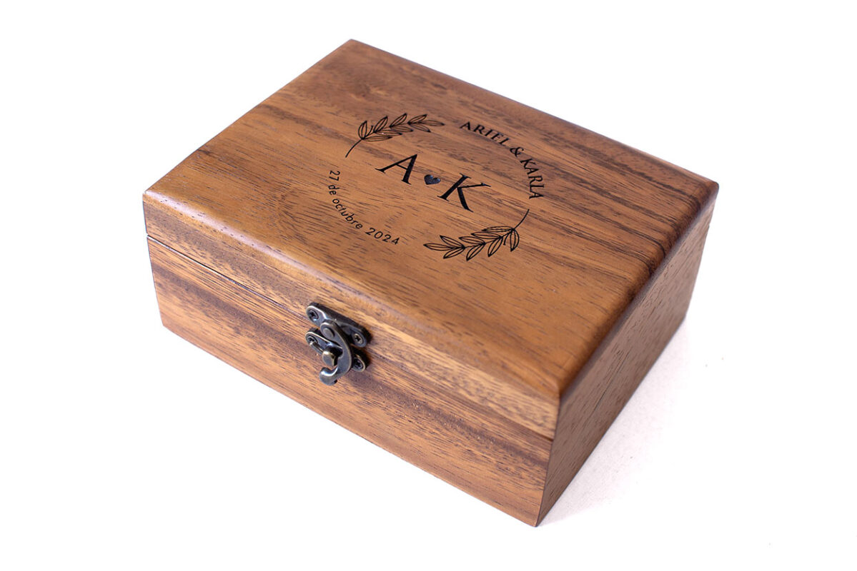 Cajita de madera personalizada para vino y snacks