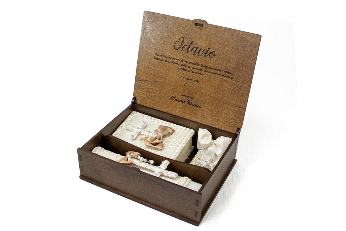 Cajita de madera personalizada para vino y snacks