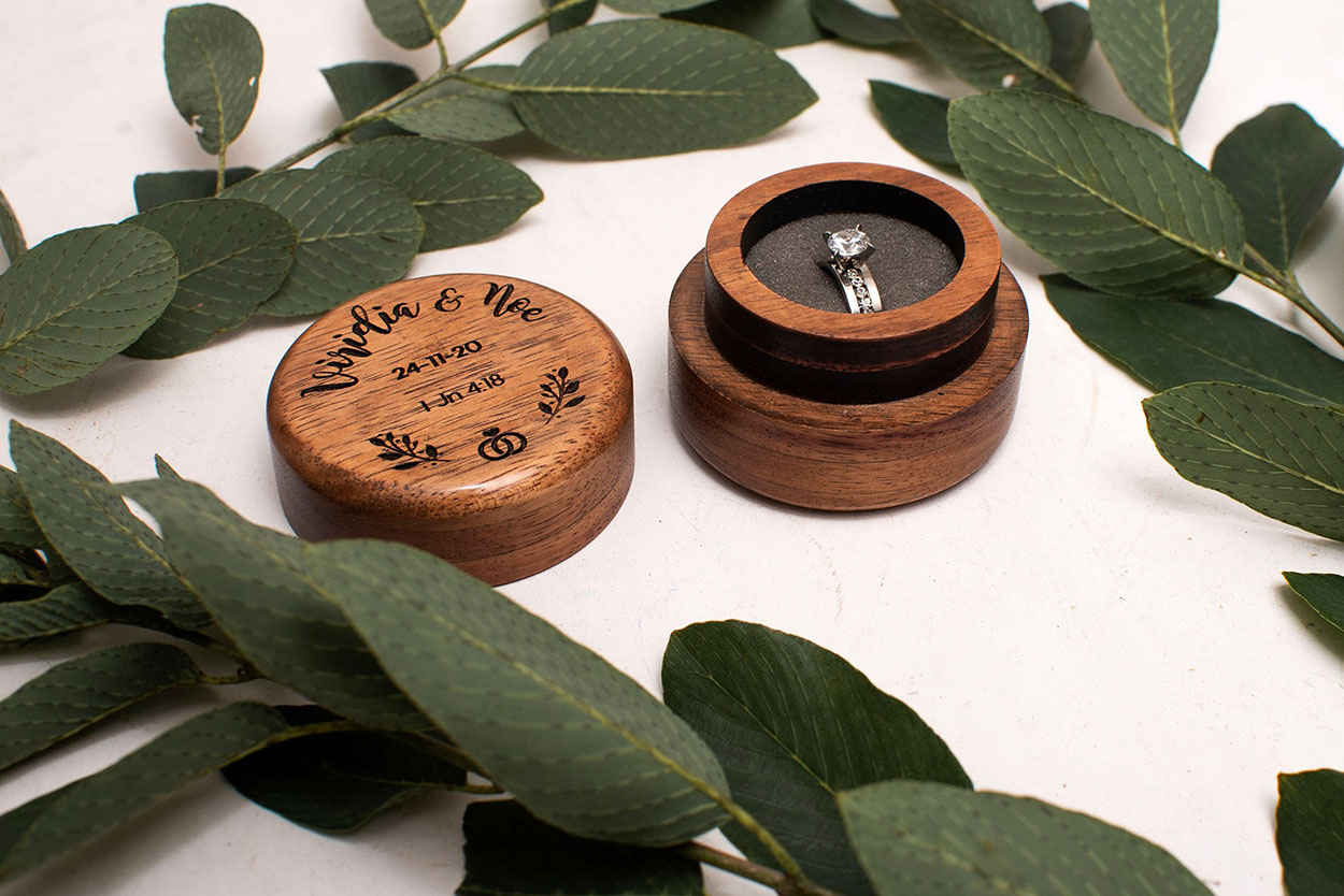 Cajita para anillos de boda personalizada