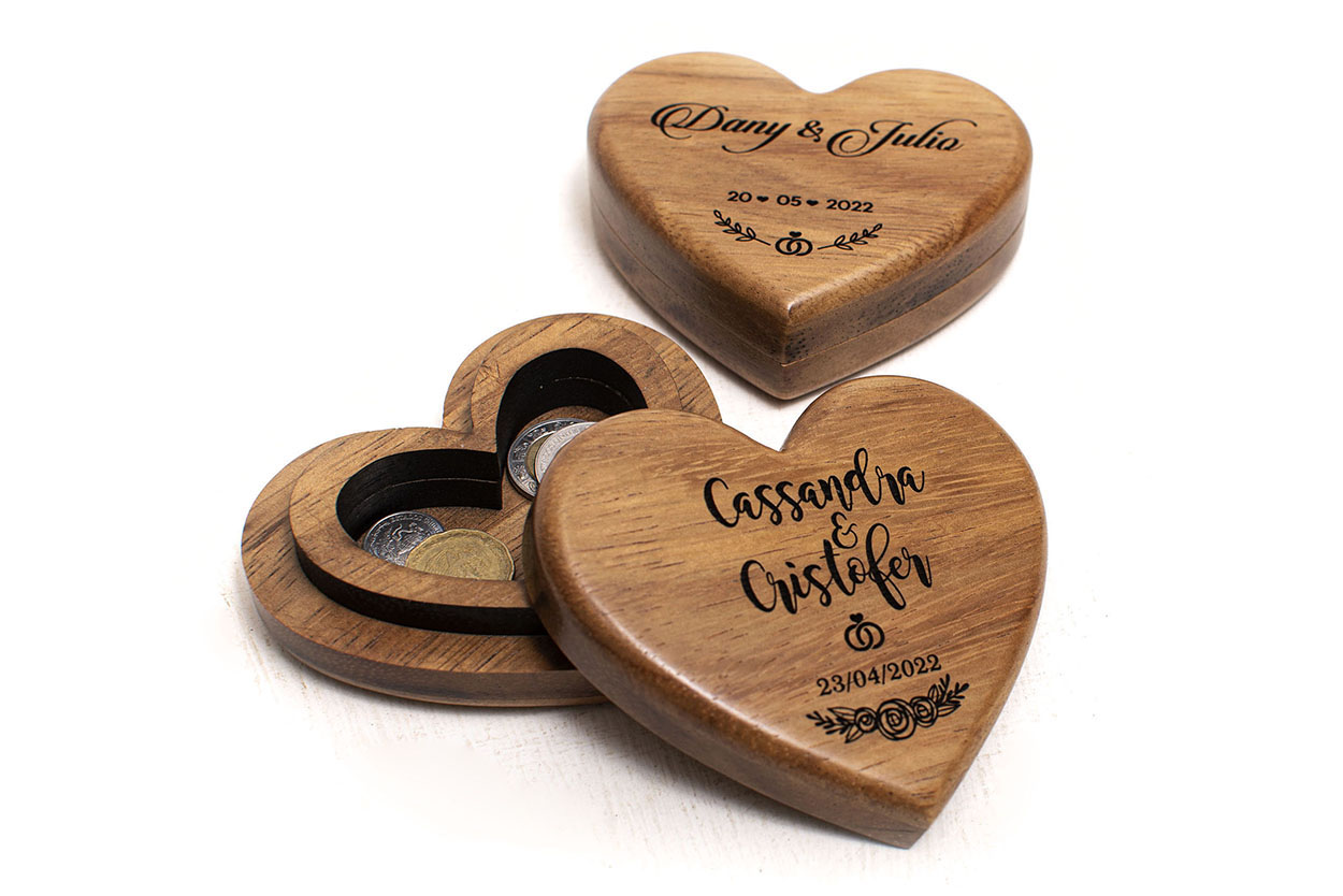 Caja Corazón de madera para Arras de Boda