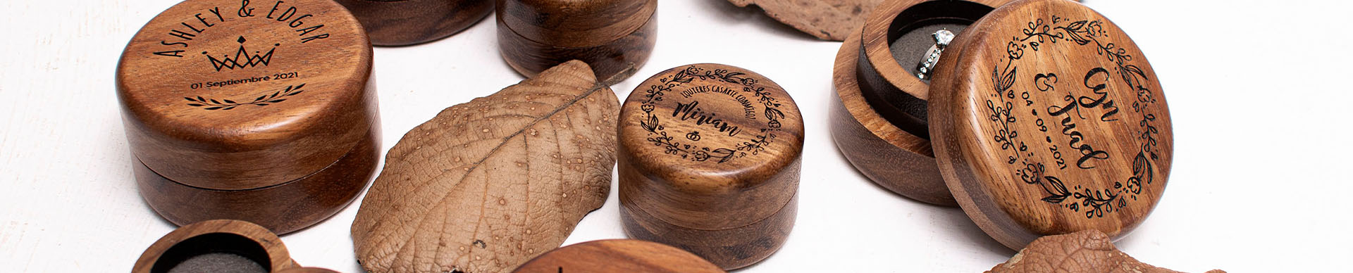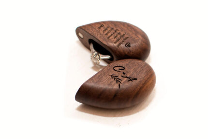 Caja de madera para anillo de compromiso elaborada en maderas finas – 100% madera fina (PAROTA) – Grabado personalizado en