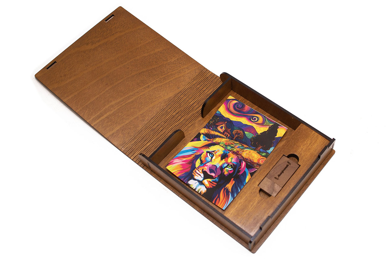 Cajita para impresiones con usb de madera personalizada. ¡Guarda tus memorias y recuerdos! Con la cajas de fotos de Aserrín dale un toque personalizado a tus fechas más importantes.