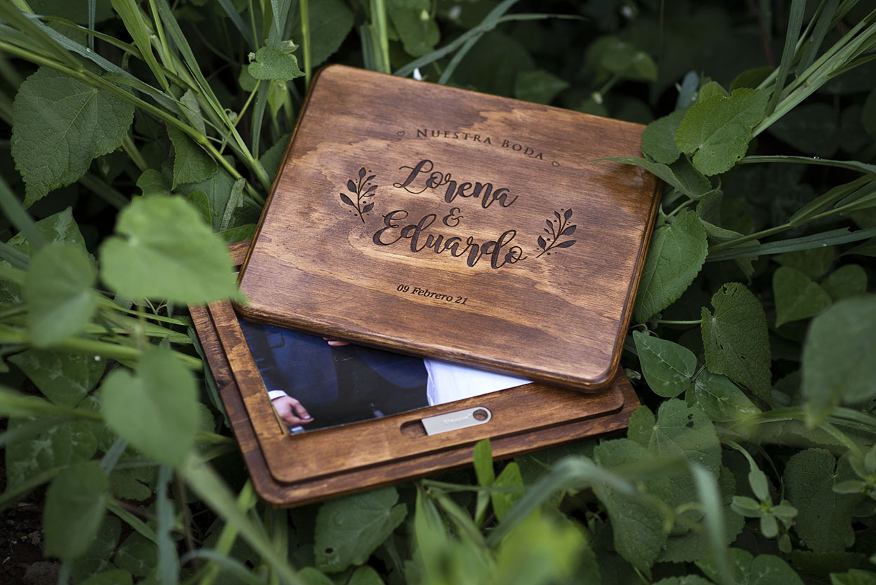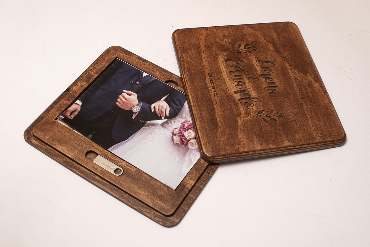 Caja para fotos personalizada deslizable + usb 16gb de madera