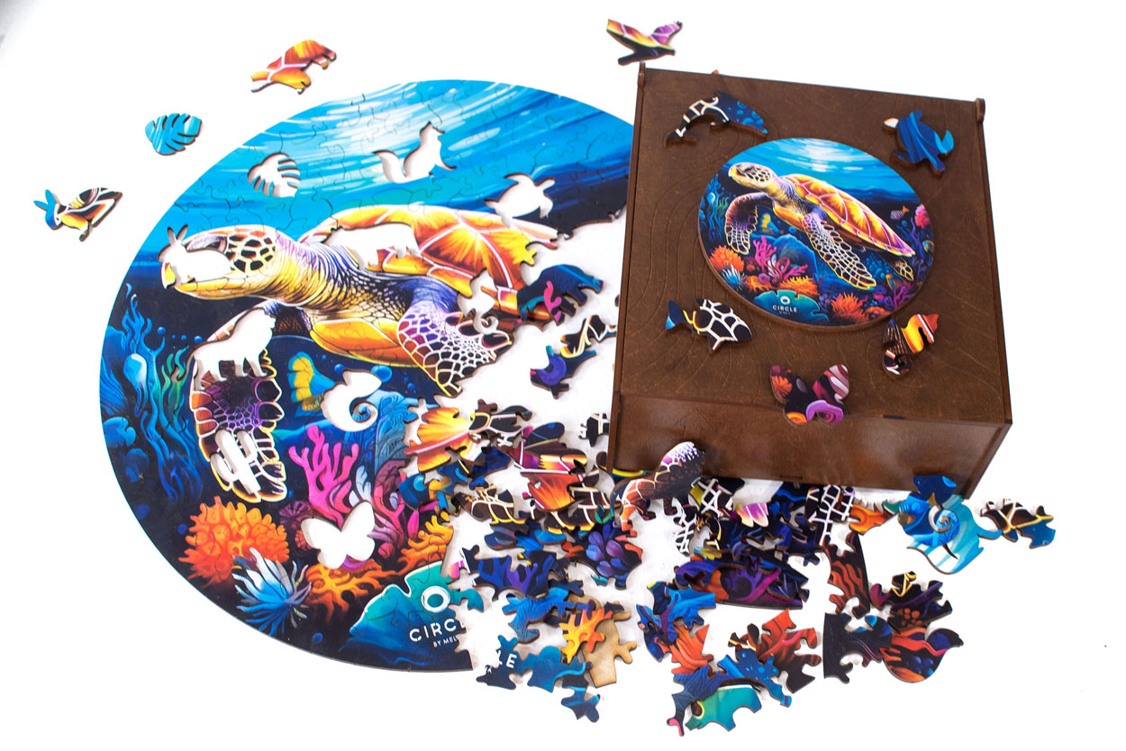 Embárcate en una aventura submarina con este exquisito rompecabezas de madera, protagonizado por una majestuosa tortuga rodeada de vibrante vida marina. Cada pieza es una ventana al océano, diseñada para inspirar calma, belleza y conexión con la naturaleza.